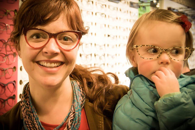 Look at these lovelies that were in the shop recently: Heather & her mini-me entourage modeling some beautiful cat-eye shapes to inspire our spring color palette!