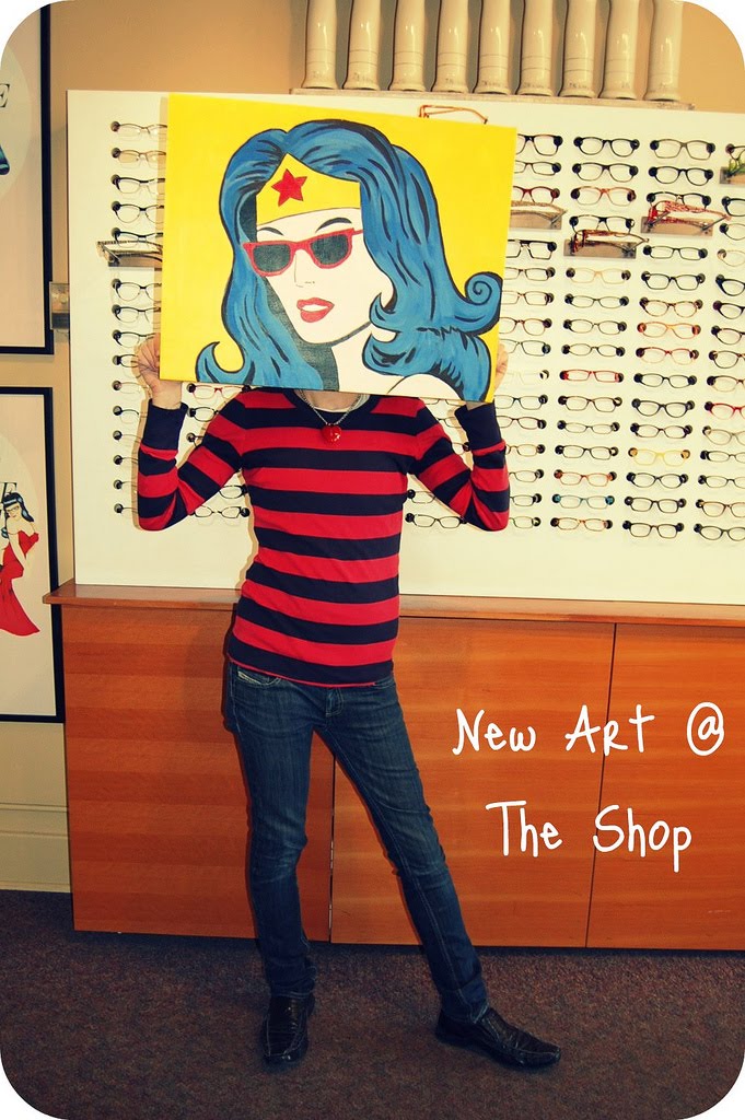 Stan stumbled upon this painting in downtown Fremont and couldn’t pass it up. We love the pop art colors and styling and of course, its Wonder Woman in glasses!! What’s not to love!? The artist dropped by the shop on Saturday to show us some new work and we are commissioning some new pieces as well. Keep an eye out!