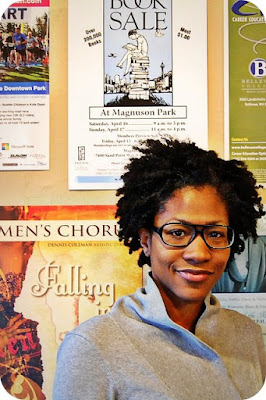 This is Kate. The turquoise hi-lite on her new frame looks so good! Classic shape…not so classic color…looks mighty fine. Kate works at Velouria down in Ballard, and we really like the Velouria Blog too! A number of us Eyes on Fremont people have picked up some pretty nifty indy designed goods at Velouria…we like what they’ve got going on there.